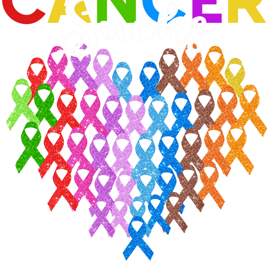 Because sometimes the truth needs to be said. This multicolored ribbon design brings awareness to all cancer types while expressing what everyone feels — cancer truly sucks. A supportive, relatable design for events, fundraisers, and everyday wear.